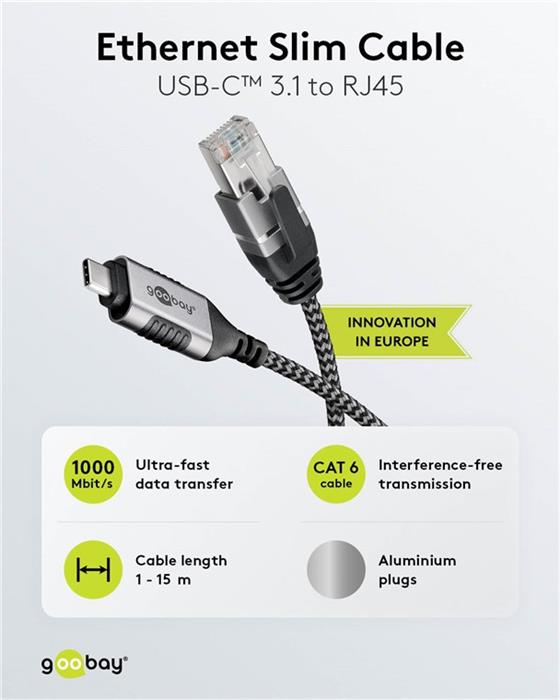 Das Technik-Upgrade für maximalen Komfort: Unser innovatives Adapterkabel ist die kompakte Ethernet-Lösung für alle USB-C™-Geräte ohne eigenen RJ45-Port. Der raffiniert im USB-Stecker verbaute Smart-Chip ersetzt die bislang immer erforderlichen, umständlichen RJ45-auf-USB-C™-Adapter. Ohne weitere Treiber ist sofort Ethernet verfügbar. Zusätzlicher Bonus: Das USB 3.1-Kabel ist mit dem Thunderbolt™ 3-Port von Apple kompatibel.