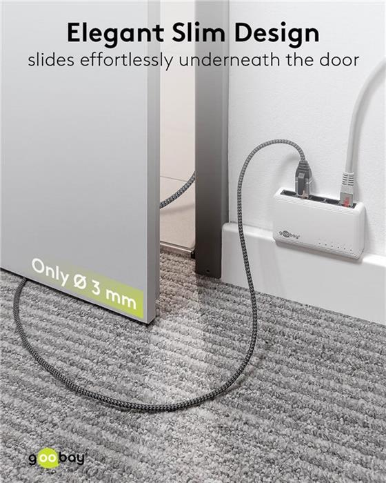 Das elegante Slim-Design (Ø 3 mm) des CAT-6-Kabels sorgt für eine dezente Optik und ist die kompakte, leichte Lösung unterwegs und auf Reisen
