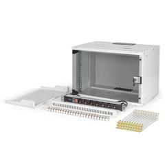 Ob Privatbereich, Büro oder bei Unterverteilungen mit geringen Platzverhältnissen: Mit den kompakten 483 mm (19“)-Lösungen der SOHO Pro Serie installieren Sie ihr Netzwerk, wo sie es möchten. Die Montage erfolgt in wenigen Schritten und ist dank beiliegender Schritt-für-Schritt Anleitung kinderleicht. Erhältlich in vier Ausführungen von Höheneinheiten (4HE, 7HE, 9HE, 12HE) werden in diesen Netzwerk-Sets perfekt aufeinander abgestimmte DIGITUS Komponenten ergänzt, um schnell und einfach eine einsatztaugliche IT-Verkabelung zu gewährleisten. Der Netzwerkschrank sowie das jeweilige Zubehör (bspw. Switch, Patch Panel, Steckdosenleiste, Fachboden, Kabelführungspanel, Patchkabel, etc.) werden in einem kompakten Karton geliefert.