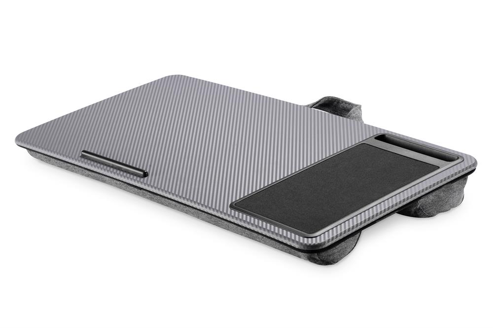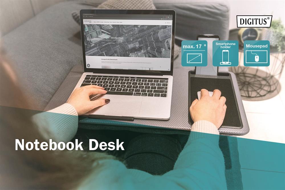 Der Notebook Desk ermöglicht das Arbeiten von Überall - Maximale Flexibilität. Er bietet ein Mauspad sowie einen Smartphone-Ständer. Der Halter an der Unterseite verhindert das Rutschen des Notebooks auch bei geneigter Arbeitshaltung. Die weichen Polster auf der Unterseite bieten bequemen und stabilen Halt.